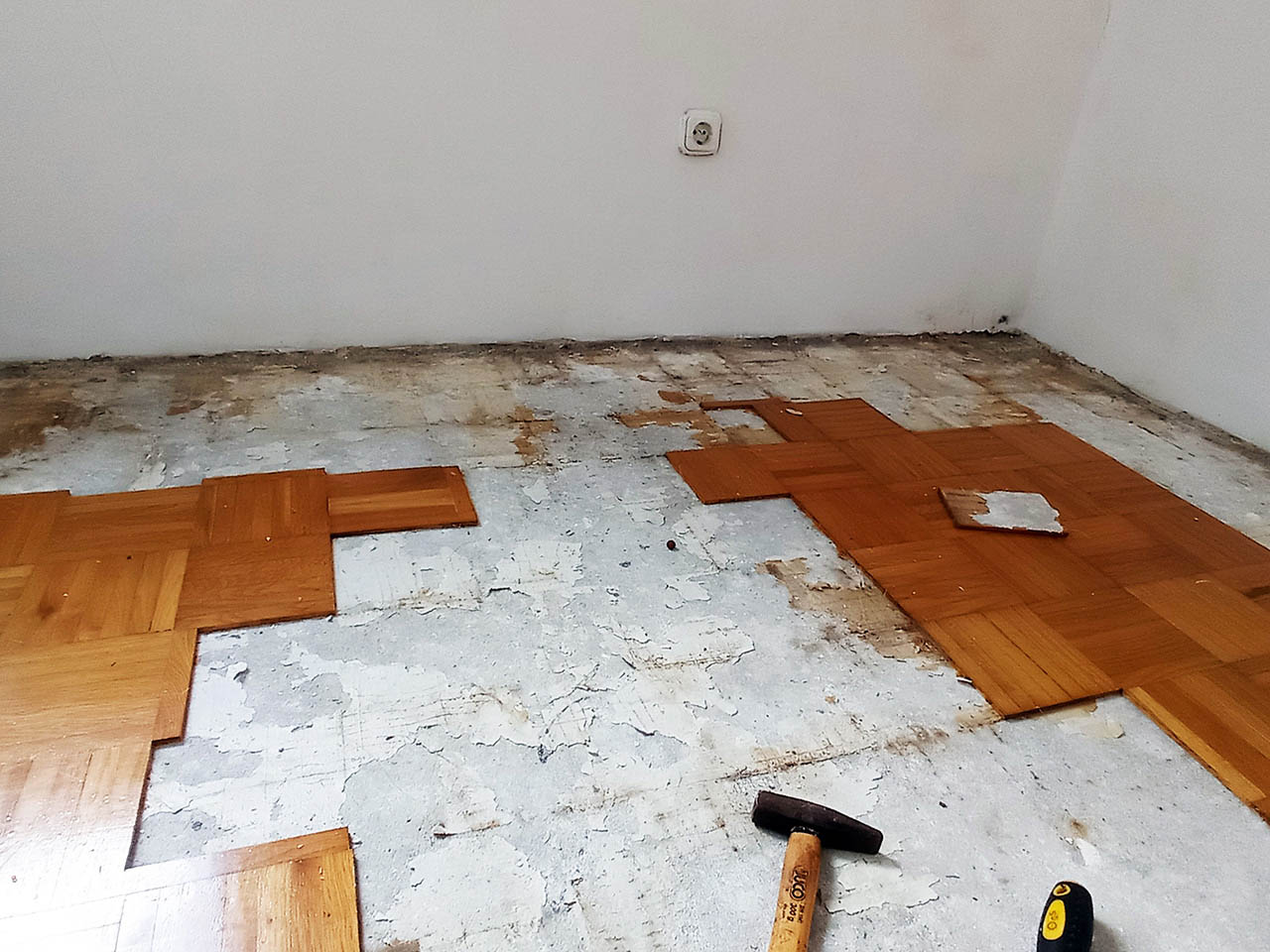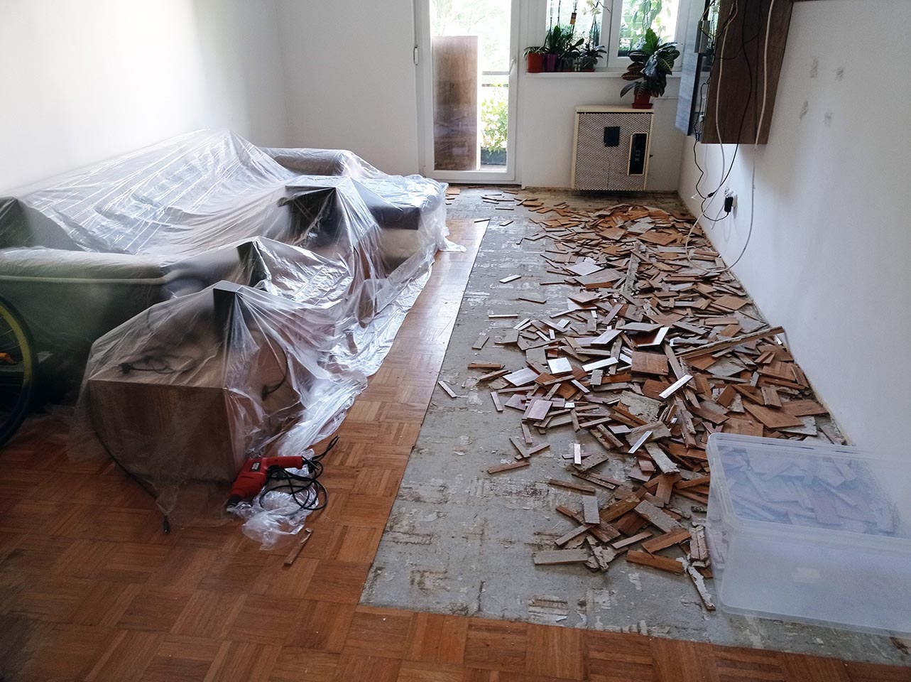 Mivel a parketta helyenként a rendszerváltást sem igazán élte meg, ezért nyilvánvaló volt, hogy ott kezdjük el, ahol már feljött. Gyenge kezdés után erős visszaesés: néhány parketta felszedése után kiderült, ide célszerszám kell.