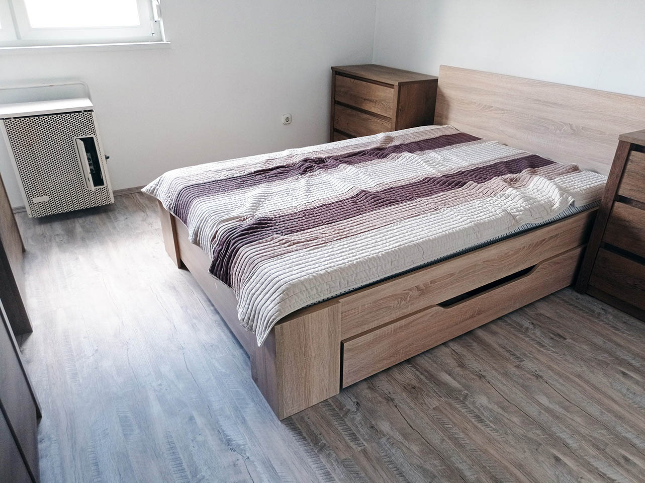 Ettől még persze szegénynek mennie kell, különösen azért, mert ötven évvel ezelőtt a kor legmenőbb trendjeihez híven, a parkettát közvetlenül az aljzathoz ragasztották, ami miatt szegény alattunk lakó minden egyes lépésünket kisebb földrengésként élhette meg.